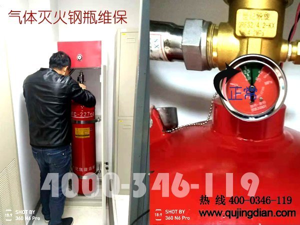 1)檢查每個(gè)滅火劑瓶組和驅(qū)動(dòng)氣體瓶組的壓力,壓力表的壓力指示值應(yīng)在綠色區(qū)域內(nèi)。